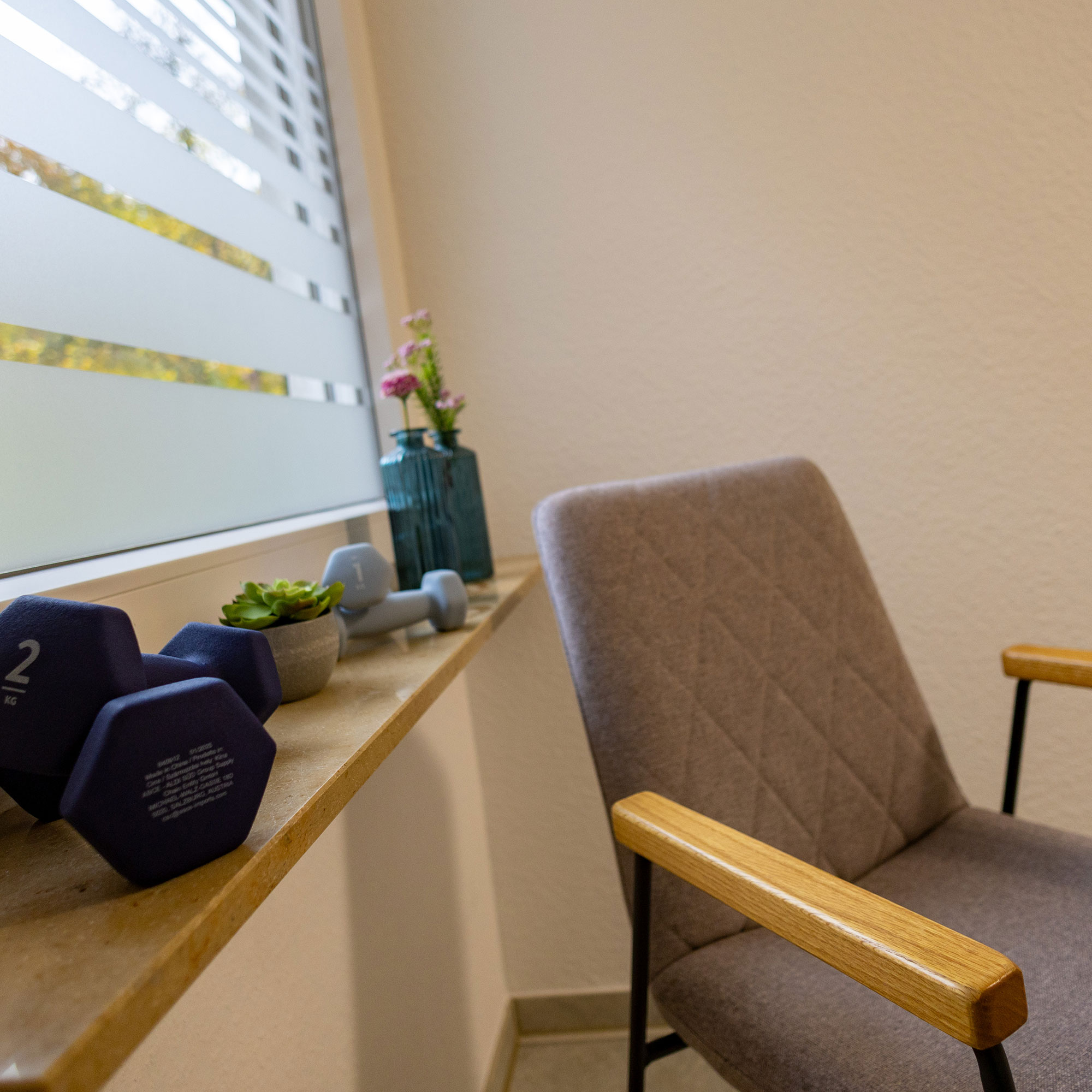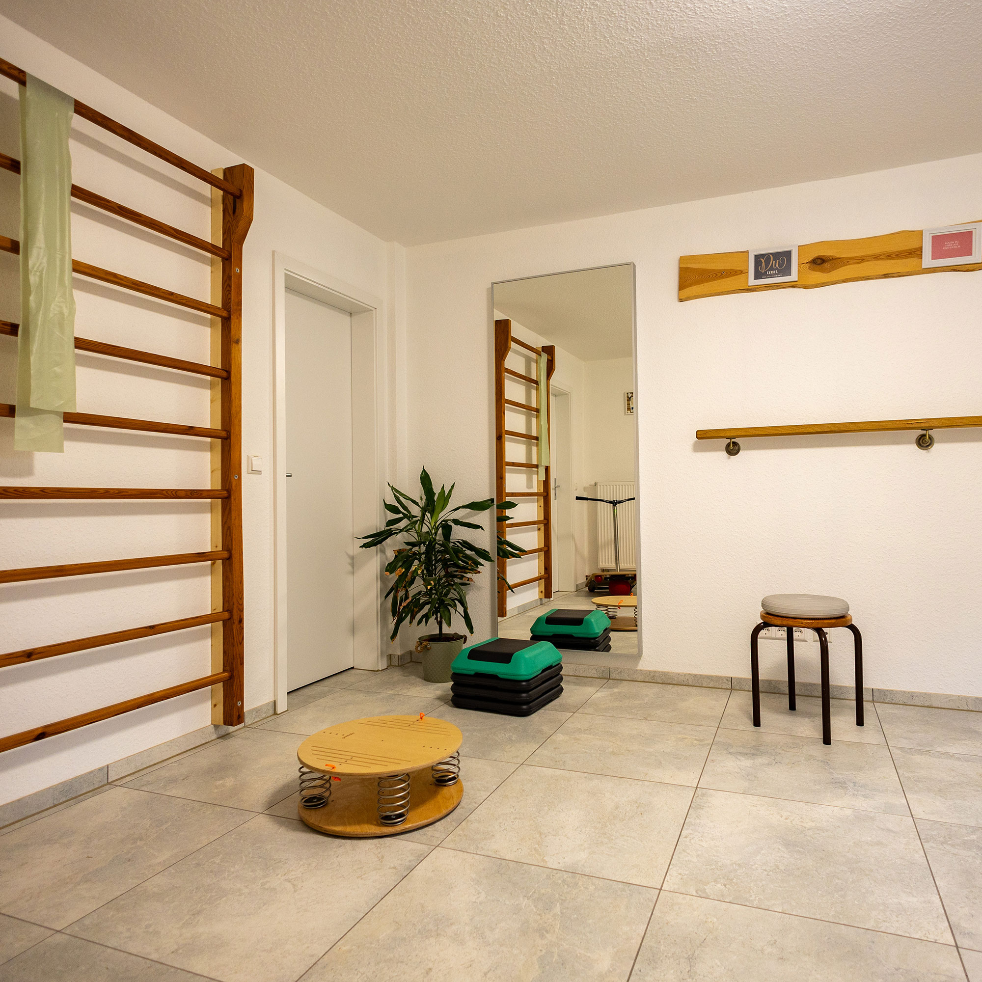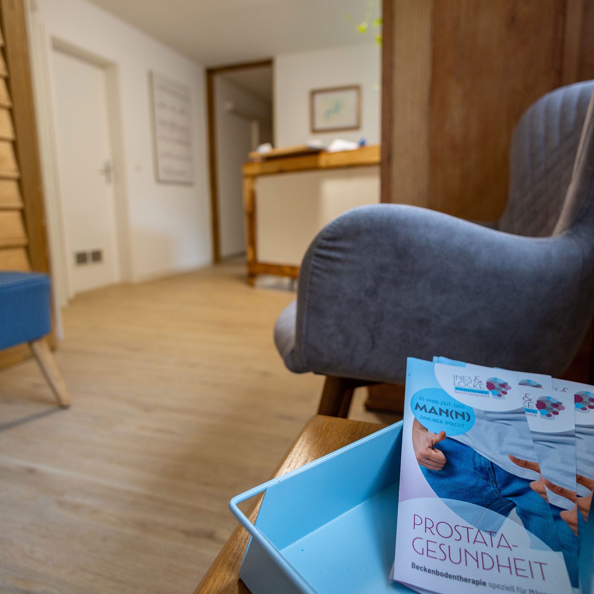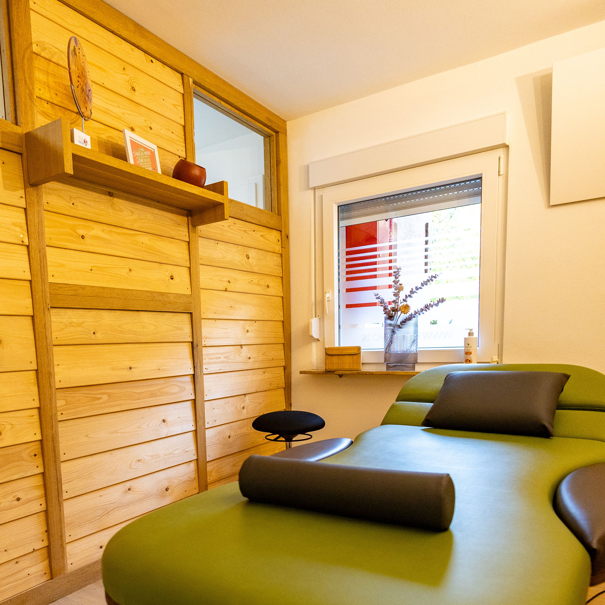In meiner Praxis begrüße ich Sie an unserer Empfangstheke. Dort klären wir die obligatorischen Details und wechseln dann in Kabine 1, Kabine 2 oder in den Gymnastikraum.